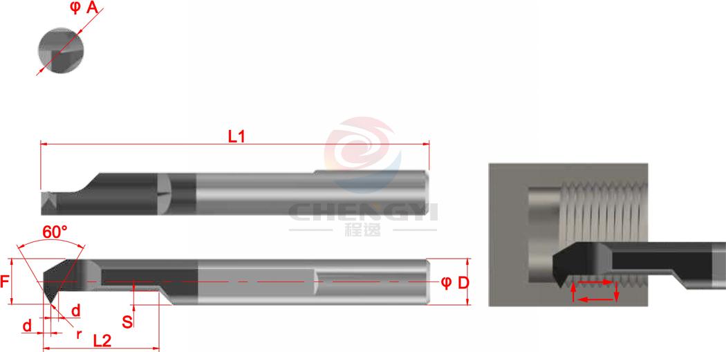 訂購代號 產品型號 最小加工直徑(mm)ØA ØD w r h L1 L2 F S 螺距範圍(mm) JIR01 JIR16L04A060 1.6 4 0.03 / 0.250 40 4 1.4 0.4 P0.25~P0.4 JIR02 JIR21L06A060 2.1 4 0.04 / 0.305 40 6 1.9 0.5 P0.3~P0.5 JIR03 JIR26L08A060 2.6 4 0.06 / 0.375 40 8 2.4 0.6 P0.4~P0.6 JIR04 JIR31L10A060 3.1 4 / 0.05 0.605 40 10 2.9 1.0 P0.5~P0.8 JIR05 JIR41L12A060X 4.1 4 / 0.05 0.720 46 12 3.9 1.2 P0.5~P1.0 JIR06 JIR41L12A060 4.1 4 / 0.10 0.750 46 12 3.9 1.2 P1.0~P1.5 JIR07 JIR51L15A060X 5.1 5 / 0.05 0.895 50 15 4.9 1.5 P0.5~P1.0 JIR08 JIR51L15A060 5.1 5 / 0.10 0.925 50 15 4.9 1.5 P1.0~P1.5 JIR09 JIR61L20A060X 6.1 6 / 0.05 1.070 60 20 5.9 1.8 P0.5~P1.0 JIR10 JIR61L20A060 6.1 6 / 0.10 1.095 60 20 5.9 1.8 P1.0~P1.75 JIR11 JIR81L25A060 8.1 8 / 0.10 1.330 65 25 7.9 2.2 P1.0~P2.0 JIR12 JIR81L30A060 8.1 8 / 0.10 1.330 65 30 7.9 2.2 P1.0~P2.0 ※X表示可以加工更小的螺距,從0.4開始。