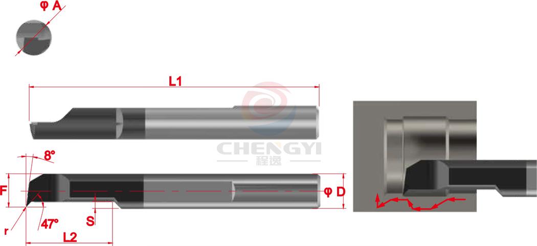訂購代號 產品型號 最小加工直徑(mm)ØA ØD r L1 L2 F S JQR01 JQR31L10R010 3.1 4 0.10 40 10 2.8 0.60 JQR02 JQR31L15R010 3.1 4 0.10 46 15 2.8 0.60 JQR03 JQR41L12R010 4.1 4 0.10 46 12 3.8 0.80 JQR04 JQR41L20R010 4.1 4 0.10 50 20 3.8 0.80 JQR05 JQR51L15R015 5.1 5 0.15 50 15 4.8 1.00 JQR06 JQR51L25R015 5.1 5 0.15 60 25 4.8 1.00 JQR07 JQR61L20R015 6.1 6 0.15 50 20 5.8 1.20 JQR08 JQR61L30R015 6.1 6 0.15 60 30 5.8 1.20 JQR09 JQR81L22R020 8.1 8 0.20 60 22 7.8 1.50 JQR10 JQR81L30R020 8.1 8 0.20 65 30 7.8 1.50