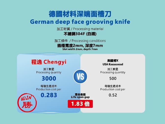 對比圖表展示了採用優質德國材料精心打造的程逸刀具如何在耐用性、效率和成本節約方面超越競爭對手。這些刀具旨在提供卓越的性能,同時顯著降低營運成本。