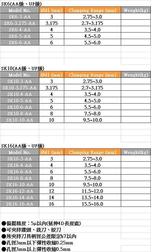 SK16高速精密筒夾(UP級)